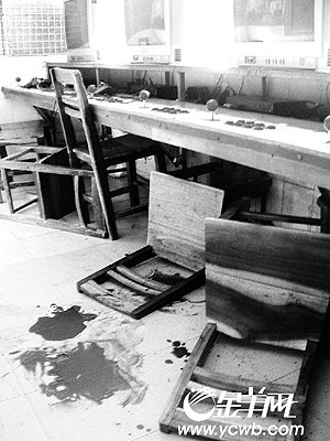 5楼的游戏室里翻倒了3张椅子,地上的血迹触目惊心。周皓/摄