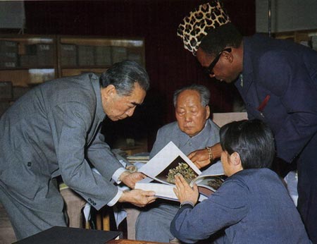 [attachmentid=119451]1975年6月28日周恩来总理在医院会见加蓬总统邦戈。[attachmentid=1194521975年7月1日周恩来总理在医院同泰国总理克立・巴莫签署两国建交公报[attachmentid=119453]1973年1月13日周恩来总理陪同毛泽东主席会见扎伊尔总统蒙博托中将,并观看他赠送的画册。][attachmentid=119447]另一部《仇大娘》剧照,周恩来 再一次男扮女装