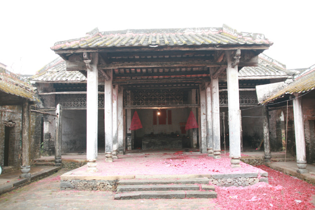 大宗祠建P垌内村屯,坐西向东。入伙对联:长发其祥,暖(?)得我所。大宗祠门联:济阳欣庆,f垌分基。蔡族济阳郡。