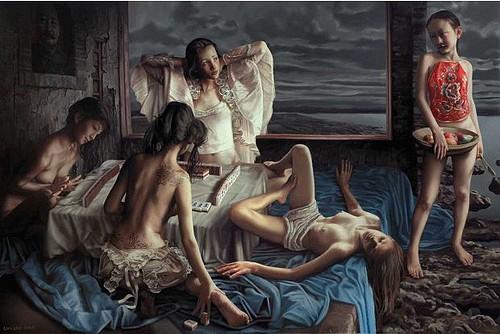 Games。这幅画中也是Game,却是中国的传统GameDD麻将。这些女子,代表着全球化竞技场上的博弈者。