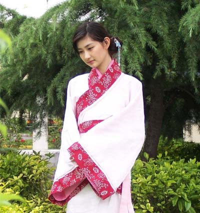 总的汉服特色是:宽衣交领,袖松且长,隐扣系带,上衣下裳