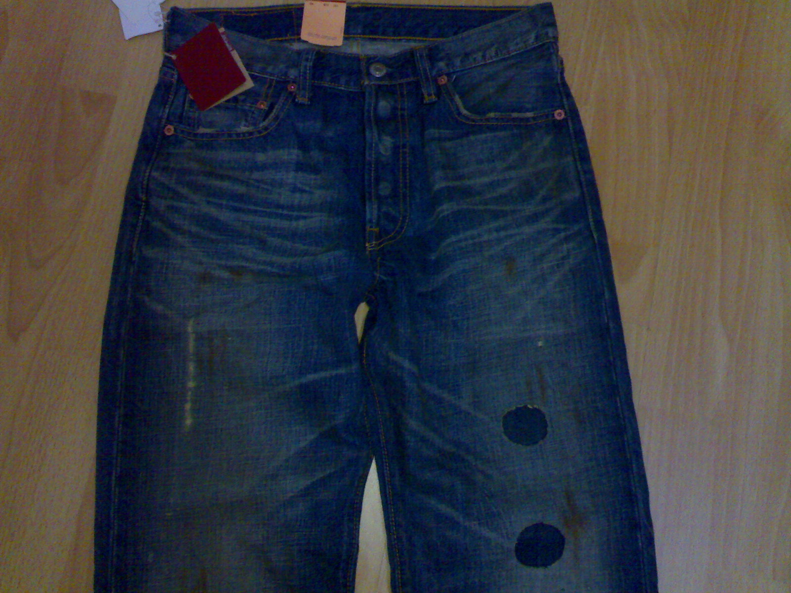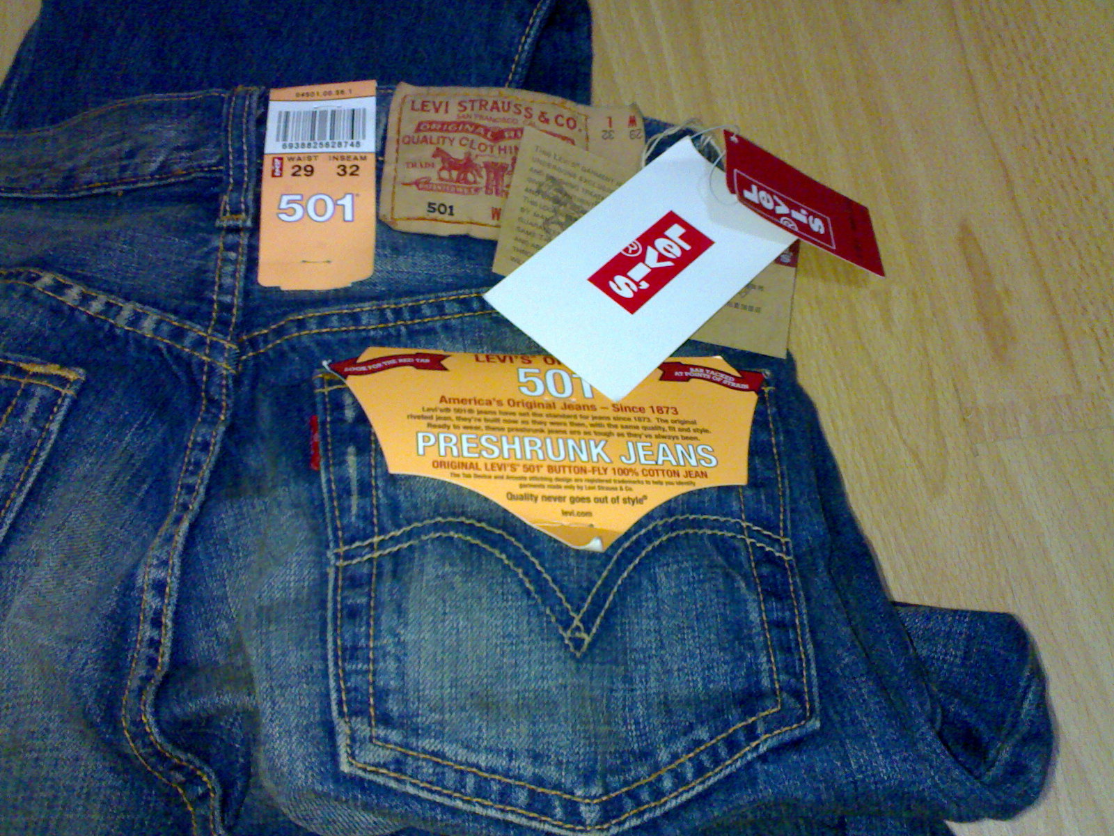 照片如果是实拍的话,应该是正品,我是几条正品和几条流野轮着穿的```所以还算有点辨别能力``` 觉得款式喜欢就买吧,不用带有"边有甘大个夹p随街跳"的疑问,因为没有什么热门的型号,比如501,901,N3BP之类,所以五折还是比较合适的价钱了. 值得一提的是里面的523``还是值得买的,但是比较收身``太丰满穿起来可能就不是很舒服了,以前EDISON代言的