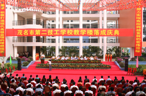 发展前景:学校占地面积大,社会影响力强,生源充足,具备可持续发展的良好条件。广东省劳动和社会保障厅厅长方潮贵、副厅长孙庆奇、茂名市委书记周镇宏、市长罗荫国、市委常委许木咏、市人大副主任何志勇等省、市领导也多次到学校指导工作,对我校的办学工作给予充分的肯定,并作出了要把茂名市第二技工学校建成国家重点技工学校的重要指标。为此,省财政厅、省劳动和社会保障厅先后拨款 4700 万元,茂名市人民政府也提供5000万元贴息贷款支持我校建设国家重点技工学校工作。