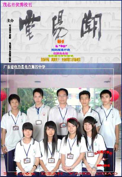 电白第四中学"发扬传统 真抓实干 开创学校新局面 "之际,谨以此文,祝四中快乐!祝四中人一路走好,祝四中校园文学一路走好!