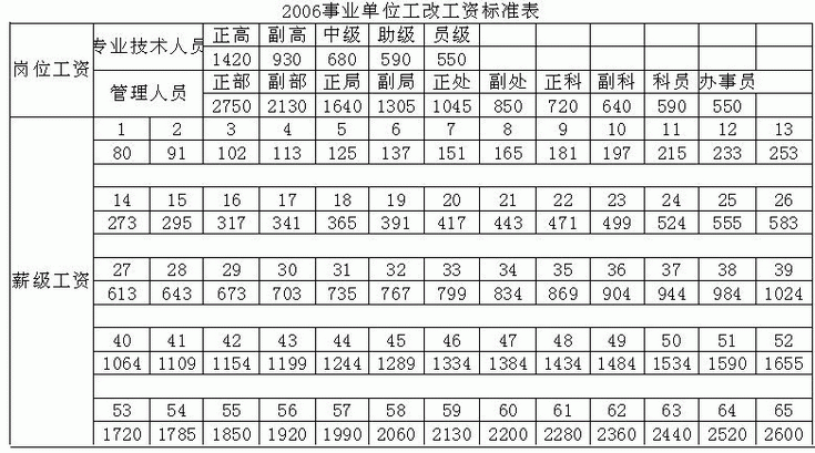 要查自己的工资,首先从“一、岗位工资”确定自己的岗位工资(按职称),然后从“三、薪级工资套改表”中根据自己的职称年限及工龄(大中专毕业生加上在校年限)查到自己的薪级是多少,再到“二、薪级工资”查到工资数是多少,加上岗位工资,中小学教师再乘以1.1(即加上百分之十),再加上补贴等,即总工资数。