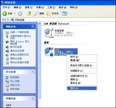 1.进入 控制面板~~~网络与Internet连接~~~网络连接,创建一个快捷方式;