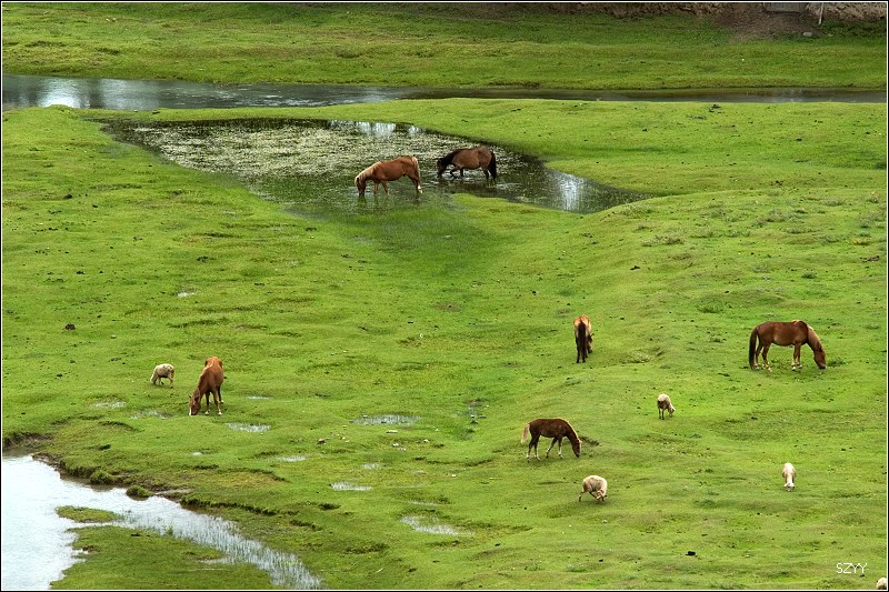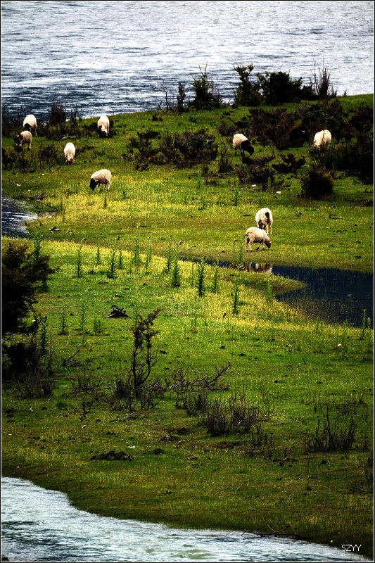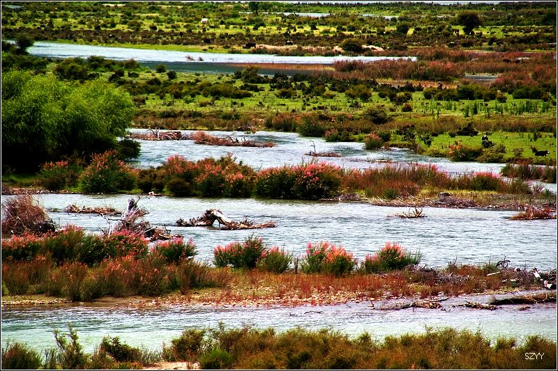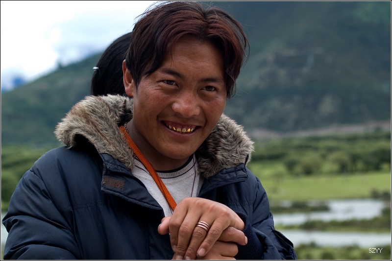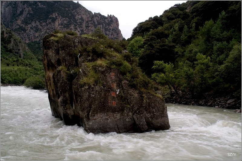 我们拍照的时候,周围有一些藏族小孩子要东西,我们一路上已经把车上的书本文具分发完了,还有一袋文具图书放在老曲的车尾箱里,老曲已经单车先走了。也许是因为这个景区来的游客比较多,跟此前我们遇到的孩子们相比,这些小孩已经不那么淳朴了,在我们的车上到处找东西,甚至拉开我们车的后尾箱,很无奈。继续前行,到达尼洋河和雅鲁藏布江的交汇处,尼洋河的清水和雅鲁藏布江的浑水相交,水线很明显。前面已经不好走了,坐船去雅鲁藏布大峡谷每人要500元,来回几小时,已经比较晚了,而且天气不好,不好拍片,另外我们的车放在这也不安全,所以还是不去看峡谷了,开车赶回林芝。