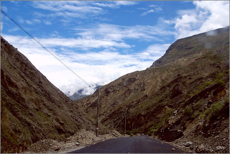 路过村子,有几条规模不大的泥石流,我们小心开了过去。