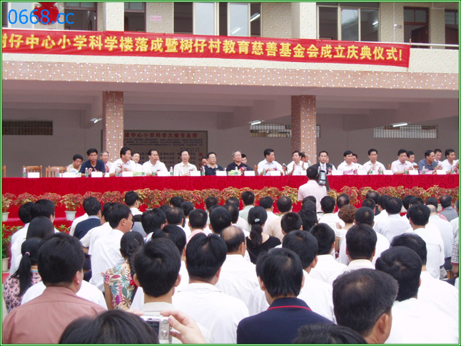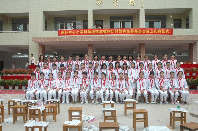 树仔中心小学科学楼落成暨树仔村教育慈善基金会成立庆典仪式! 2007年9月6日.各级领导、各界嘉宾及树仔中心小学全校师生全体欢聚