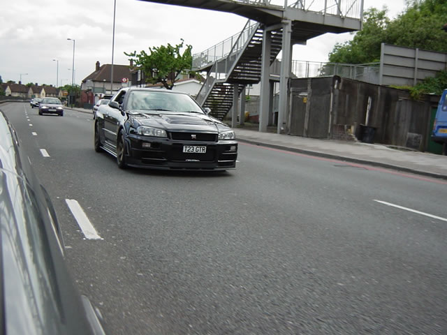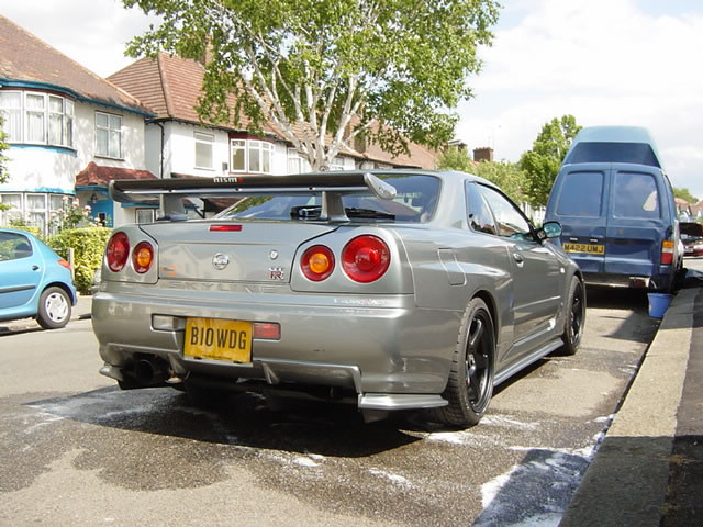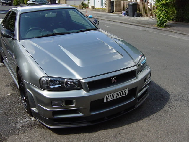 Skyline的第10代R34还一直延续使用 RB26DETT, in-line 6缸 2.6 升双Turbo引擎. 和以往版本最主要的区别在于外部设计,新几何学设计的尾翼,车载GPS还有引擎管理电脑.