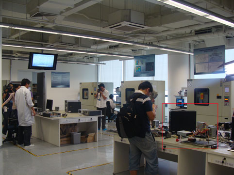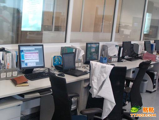 实验室全景,红框内的台式电脑据说是联想正在研发的“天价”电脑,要卖到4万多啊!!