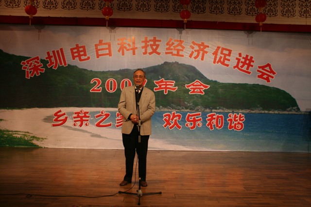 联谊会作为深圳的电白乡亲之家,成为会员、乡亲之间交流平台,沟通信息,紧密关系,引导大家共同发展,共同富裕,共同关心家乡建设。2007年初,联谊会在会长廖寿伦的带领下,先后参加了电白县委、县政府在广州天河大厦召开的恳亲会,参加了振兴电白广州联谊会的年会,互相交流心得体会,互相鼓励发展,一片欢乐和谐氛围。七月份,邵氏企业机构庆典成立三周年,盛情邀请深圳市房地产、物业管理、建筑工程等同行,共同研讨“行业发展及品牌竞争”。联谊会名誉会长、会长、秘书长等领导前往祝贺,借助庆典促进乡情交融,鼓励乡亲企业壮大发展,宣传邵氏企业机构诚信合作、良性竞争的优秀品牌。10月份,乡亲企业江海天化工、油墨东莞公司开业庆典,会长廖寿伦、副会长张辉、何进、刘雍钊、邵天胜、谢翠珍、卓佩丽、柯发青、黄碧春、崔锦昌、许玉提,秘书处的陈欢、蔡炳超、谢旭周等联谊会的领导参加了开业庆典,表示热烈祝贺!江海天化工东莞公司投资6000多万元,建设化工油墨工厂,年产值超亿元。电白林头籍老板蔡万江总经理誓言诚信、团结、求实、创新、安全、创造一流服务、一流产品、一流国际名牌企业!