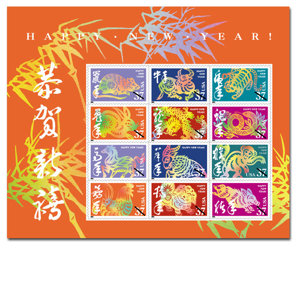 从1992年开始, 美国每年都推出该年生肖邮票。现已有全套了。加拿大也相继推出。。。
