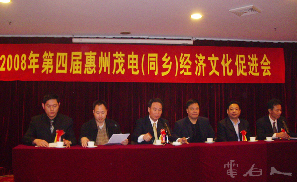 电白同乡联谊网2008年1月27日下午,惠州市茂电经济文化发展促进会在惠州市金叶酒店召开2008年年会。荣誉会长陈广豪、会长杨日成、常务副会长莫英权、龙庞、梁利儒、惠州市公安局巡警支队支队长黎正信、《中国城市经济》杂志社广东省办事处主任杨俊荣、深圳电白联谊会和东莞茂电经济技术促进会,以及《电白人》杂志社有关工作人员等各界乡贤朋友近70人参加了年会。