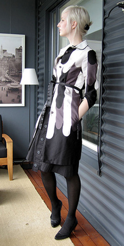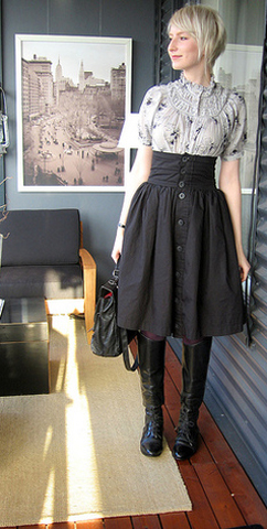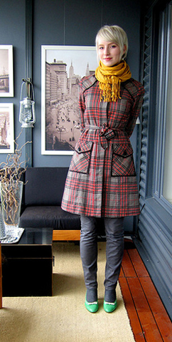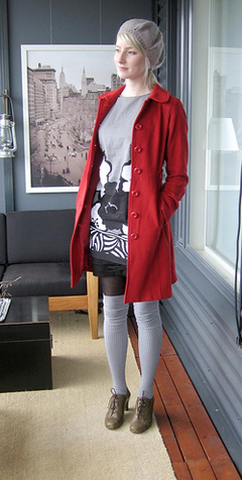 这个女生叫Piksi,一直flickr上发搭配日记,不漂亮,但长得很有个性,很会淘衣服,也很有搭配风格,颇有点化腐朽为神奇的功力,已经引来法国时尚杂志编辑的诸多关注。