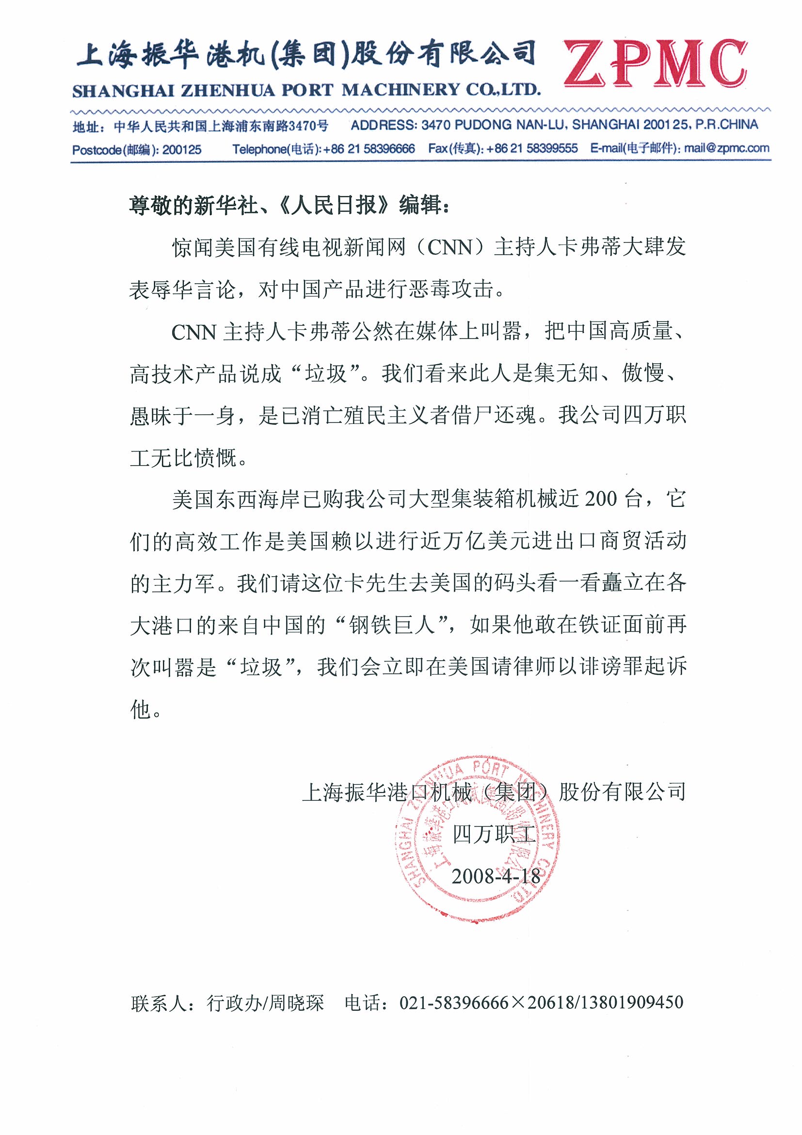 allen_su 小学六年级 注册 2007-08-12 消息 381 反馈评分 0 点数 0 2008-04-21 #4 振华港机全体职工对CNN回应 附件 1.jpg 353.7 KB · 查看: 361