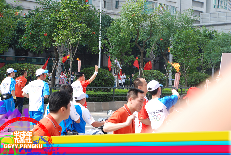 就短短的几秒..圣火就这样走过了.. 后面跟着的后勤车慢慢驶来.. 看过<新闻日日睇>的人因该很熟悉坐在车里的光头佬.. 后面还有圣火赞助商的花车.. 有可口可乐.联想.三星.. 天上的直升灰机灰来灰去好多次了.. 那位大叔真叼..哈