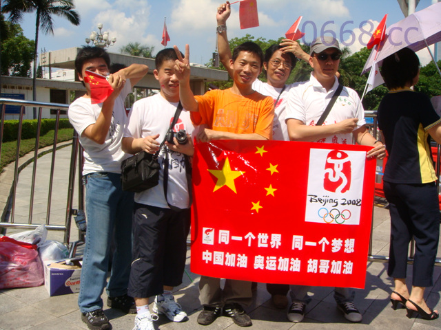 QUOTE(allcombest @ 2008年05月09日 Friday, 12:15 PM) 大家都有等得很辛苦啊! [snapback]2229251[/snapback] 传递线路 --- 市民中心南广场(起跑仪式)→福中三路→益田路→深南大道→华侨城→深圳科技园(休息)→南海大道→深圳大学→创业路→后海大道→南山第二外国语学校(午餐)→滨海大道辅道→后海滨路→海德三路→海德四路→文心五路→滨海大道→滨河大道→福田体育公园(休息)→宝安南路→深南路→上步路→笋岗路→体育中心西广场(庆典晚会) 大清早在市民中心就挤满了人,起跑仪式推迟了2小时在中午12点08分才开始. 共208名火炬手,每人跑200米. 很遗憾的是在中午13点左右,临时取消了以下路线:创业路→后海大道→南山第二外国语学校. 久久在后海大道那里等候的人们抱怨,不满,闹情绪,用矿泉水砸.