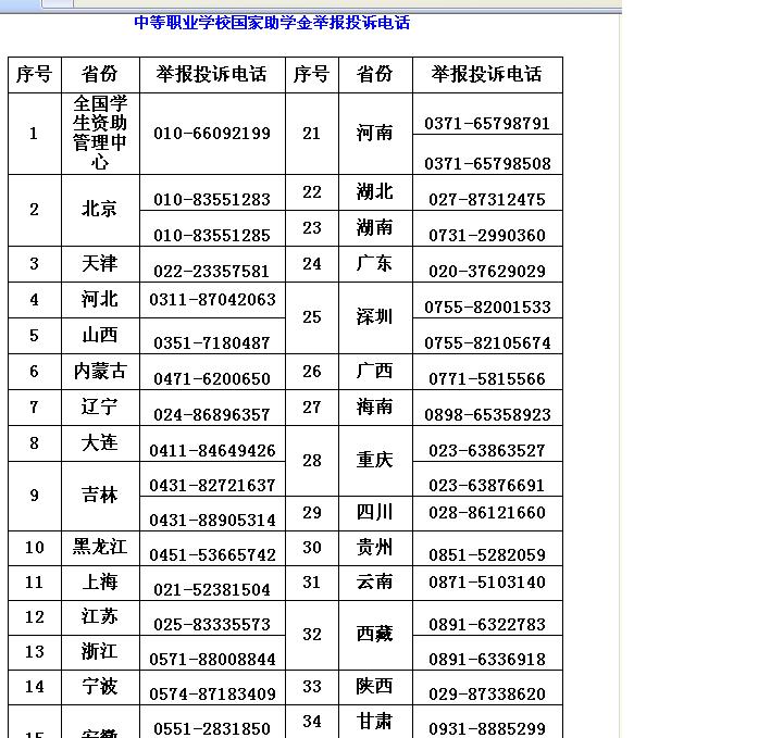 中等职业学校国家助学金发放工作举报投诉电话