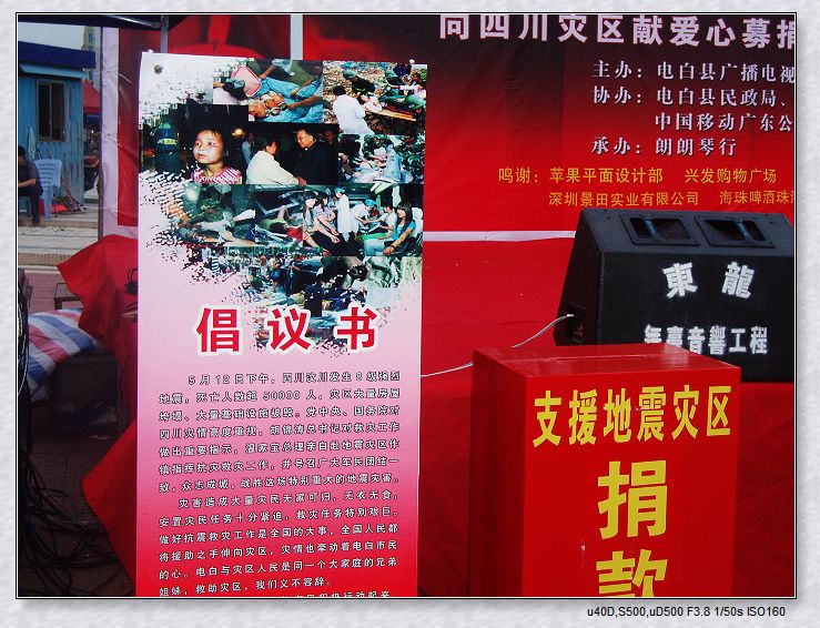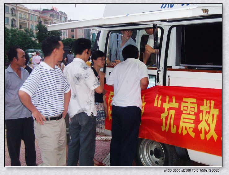 QUOTE(oo┈傻囡 @ 2008年05月23日 Friday, 11:03 PM) 去了现场,见到很多热心的朋友。 我回来的时候民政局的同志和工作人员还在晚会现场清点今晚所有热心群众所捐赠的款项。 我也捐出了一点点心意! [snapback]2250470[/snapback] 谢谢你的支持.... QUOTE(oo┈傻囡 @ 2008年05月23日 Friday, 11:35 PM) 每个人都有一颗感恩的心! [snapback]2250511[/snapback] 好人一生平安.