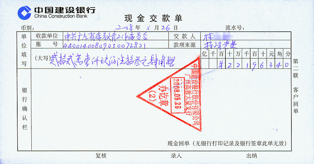 <b>四川人民我支持你们――今天我把特殊党费交了</b>