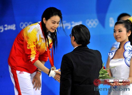 在今天北京奥运会跳水女子三米跳板决赛中,郭晶晶表现完美,得到这个项目历史上最高分415.35,成功卫冕。至此,郭晶晶个人累计已经获得四枚奥运金牌。队员吴敏霞摘下这个项目的铜牌。