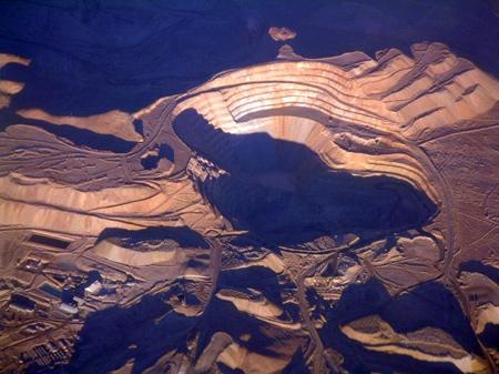 宾汉姆峡谷铜矿位于犹他州奥克尔(Oquirrh)山脉,这处矿坑深1200米,宽4000米。这是当前世界上最大的人为挖掘矿坑。