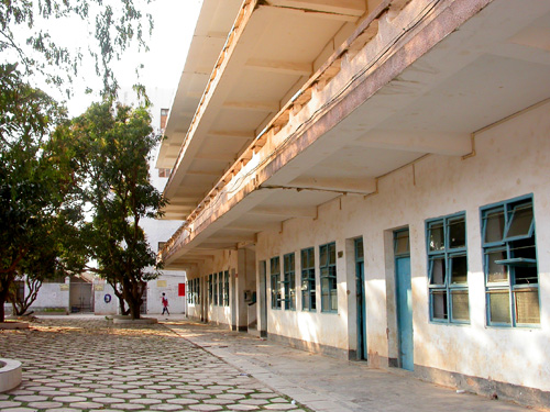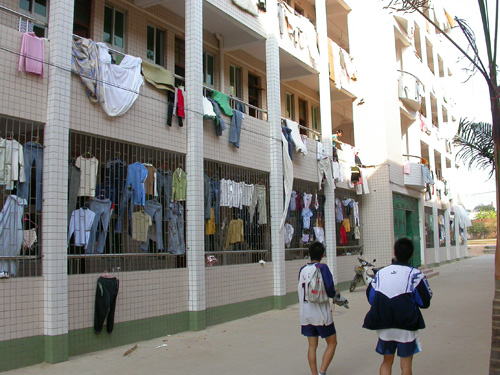 另一边的宿舍区,那栋宿舍应该是翻新过了,记得以前很旧的...
