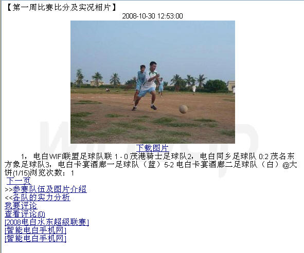 大饼 荣誉会员 荣誉会员 注册 2007-12-24 消息 389 反馈评分 0 点数 0 2008-10-30 #1 “智能电白手机网”实时报道“2008首届电白水东超级联赛 ”最新赛况 手机WAP网址:http://ai0668.wapai.cn/ 附件 Snap1.jpg 63 KB · 查看: 114 Snap2.jpg 31.7 KB · 查看: 129 Snap3.jpg 15.7 KB · 查看: 122 Snap4.jpg 47.1 KB · 查看: 137