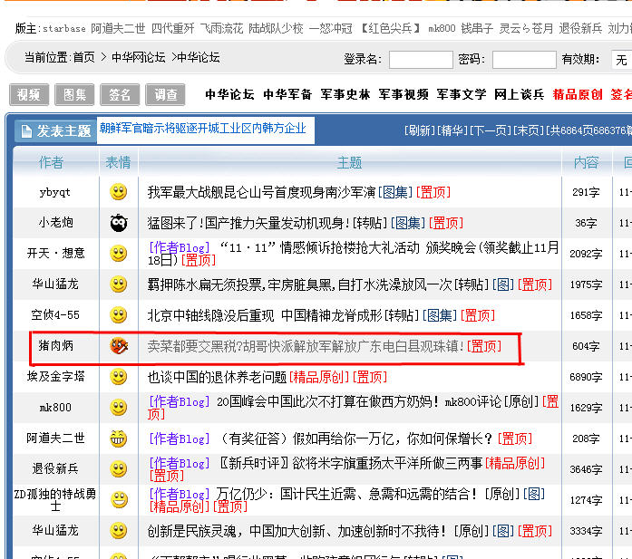 反映观珠黑社会横行,卖菜都要交保护费的帖子。已上中华网军事版头条,被军事论坛置顶,回应超过7000,回复近800,可喜可贺,看能不能因此引起关注,改善观珠治安,改善电白治安,也希望坛友去支持该贴,多反映其他镇治安情况,引起上级重视!