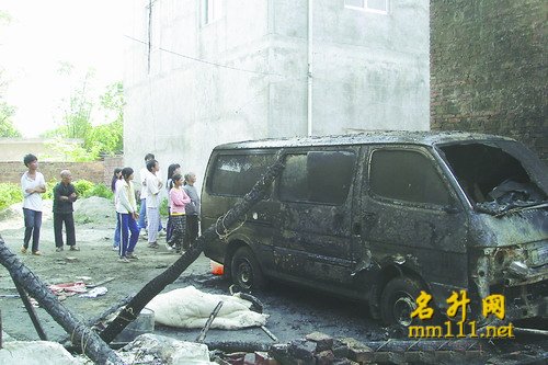 死四个,伤两个,死的四个都被烧焦啦,有个肠子都流出来了.