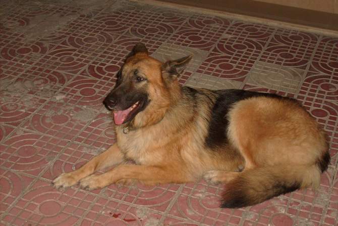 今晚上街,闪电专卖店门口见一条德牧在吃饭。
