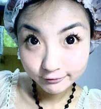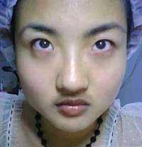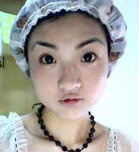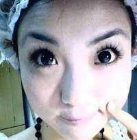 2、戴黑环~和双眼皮贴~(这步很重要哦,瞬间眼睛就变好多的~嘿嘿~和之前形成鲜明对比~)