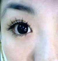 7、涂睫毛膏(将自己的睫毛与假睫毛刷在一起~然后下睫毛也刷上~哈哈~我刷刷~~刷刷~)