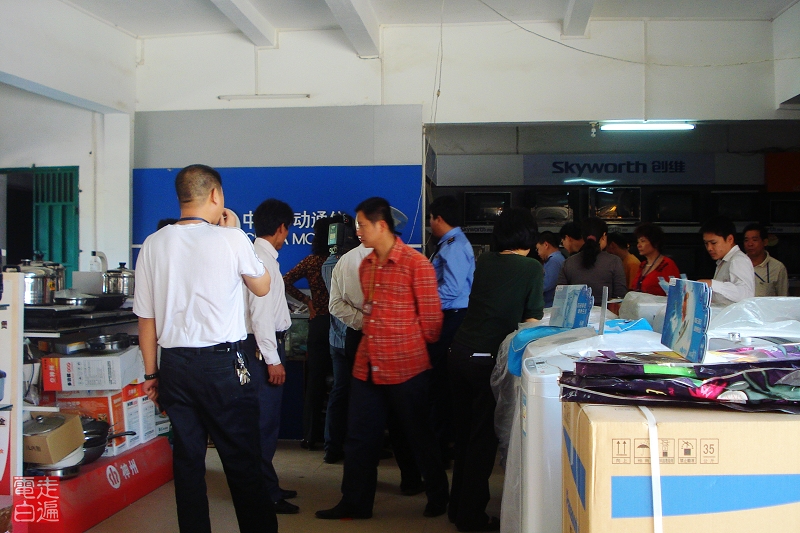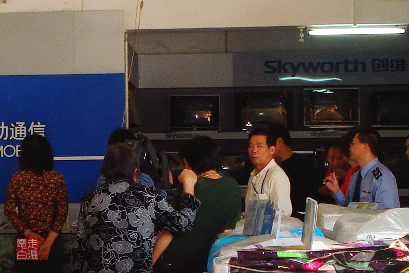 经过一家商铺,见到正在被查处,估计有违规的商品在销售。