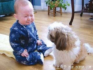 妈妈,快来,狗狗欺负我!