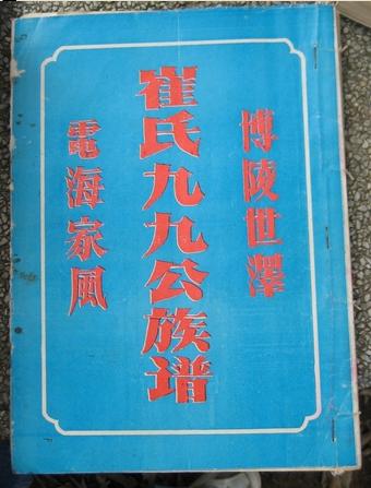 1990年崔氏族谱封面语:博陵世泽,电海家风。
