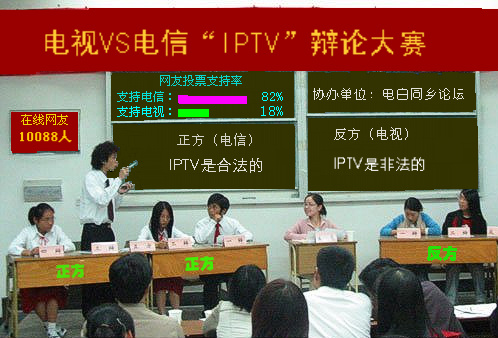 IPTV广州酒店那里装的倒处都是,怎么没见人折?说倒底无非是电信动了广电的"蛋糕"罢了!广电一家独大好还是加上电信二家竟争好,大家从移动独霸移动市场时的话费演变就可以得出结论,自联通、铁通等出来分享市场后原来装机入户要看人脸色的,而现在转向面向用户微笑服务了,各种优惠更是层出不穷!不是说IPTV就比现在的有线电视好,只是人民自由选择服务的权力都没有了吗?宪法规定只现选装各级政府的有线电视?又或者IPTV会播放反动内容?广电、电信之争粗俗的来说无非是二个黑社会争地盘,由于对方力量好够勇一时搞别人不倒就找去对方那消费的人而于!因为那是弱势群体,容易欺负!所以解放前的中国要打倒帝国主义,而解放后的我们要打倒的就是霸权消费主义!!