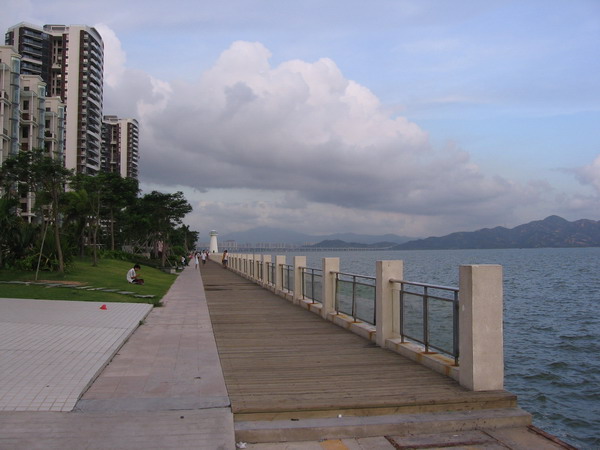 前段时间在深圳钓得比较多,南澳,东山,土洋,葵涌钓了一遍,可惜没时间上三门岛,但最喜欢的还是蛇口渔港码头,在市区内很方便,环境很好,岸边是半岛城邦楼盘漂亮的观光大道,铺着干净舒适的木地板,对岸不远就是香港漂亮的风景跟西部通道大桥,最重要的是鱼特别的多特别的大,也许得益于香港的环保,加上他们没咱们电白人那么懂钓胶蜡,那些胶腊放去都是斤几两斤的特大家伙,每当钓起鱼朋友喜欢打趣说这条可能是香港公民呢,呵呵~~~!