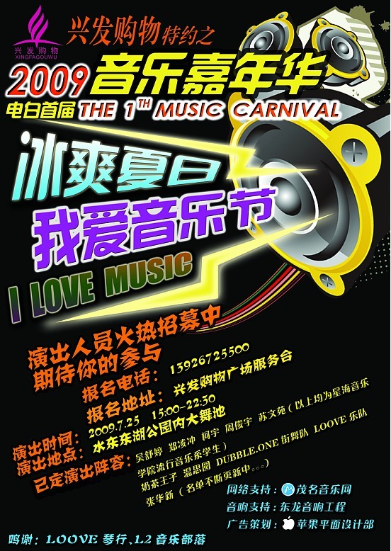 J jackie444 荣誉会员 荣誉会员 注册 2006-05-10 消息 2,241 反馈评分 3 点数 61 年龄 42 2009-06-09 #1 本次音乐嘉年华主要汇集电白本地有名气的音乐人的和外出的本地音乐人才的一次音乐盛会,动用人员和规模之大都是空前的。有兴趣参与的朋友可以电话联系参加试音。音乐形式不限。最重要是新意。(13926725500) 附件 未命名.jpg 180.4 KB · 查看: 422