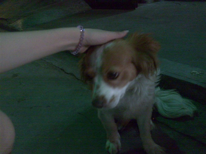 那晚在回家的路上看到这只狗狗..趴在门口.