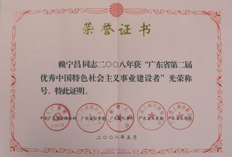 广东东凌集团赖宁昌联席董事长兼总裁荣获广东省第二届“优秀中国特色社会主义建设者”荣誉称号并获中央、省委省政府领导亲切接见。