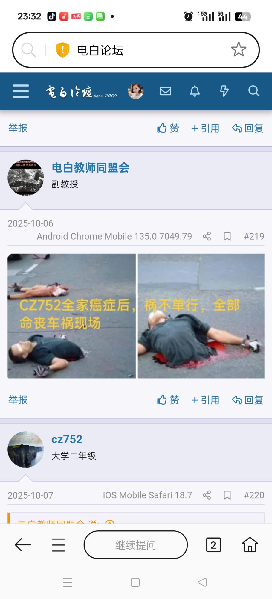 cz752 大学二年级 注册 2019-12-20 帖子 783 反馈评分 94 点数 11 星期四,10:27 iOS Mobile Safari 18.7 #17 小石龟 说: 第一次警告,你可以骂我,请不要骂我家人。 点击展开... 你有病就去医,你发这图片上来是不是要我八你全家女性的支?